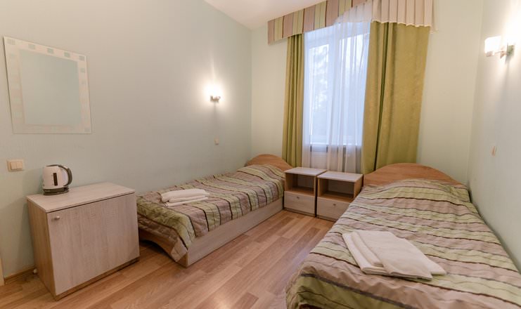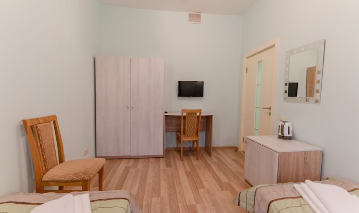 В номере четыре односпальные кровати, комнаты оборудованы необходимым набором бытовой техники: чайный набор, мини-холодильник, кондиционер, телевизор, фен.