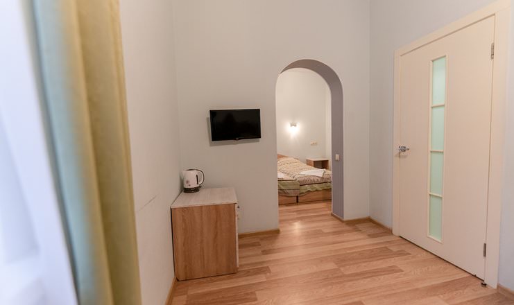 Обновленный уютный номер разделен на две комнаты, оборудован отдельными односпальными кроватями, а также предусмотрена возможность размещения дополнительного места.
