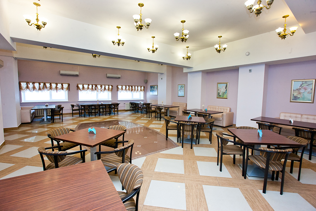 - корпус 1: после реконструкции и ремонта, в холле корпуса находится служба размещения, для удобства ожидания имеются кожаные диваны и плазменный телевизор. К корпусу пристроен культурно-деловой центр, включающий в себя кафе , ресторан №1 по принципу «шведский стол», лечебное отделение, конференц зал